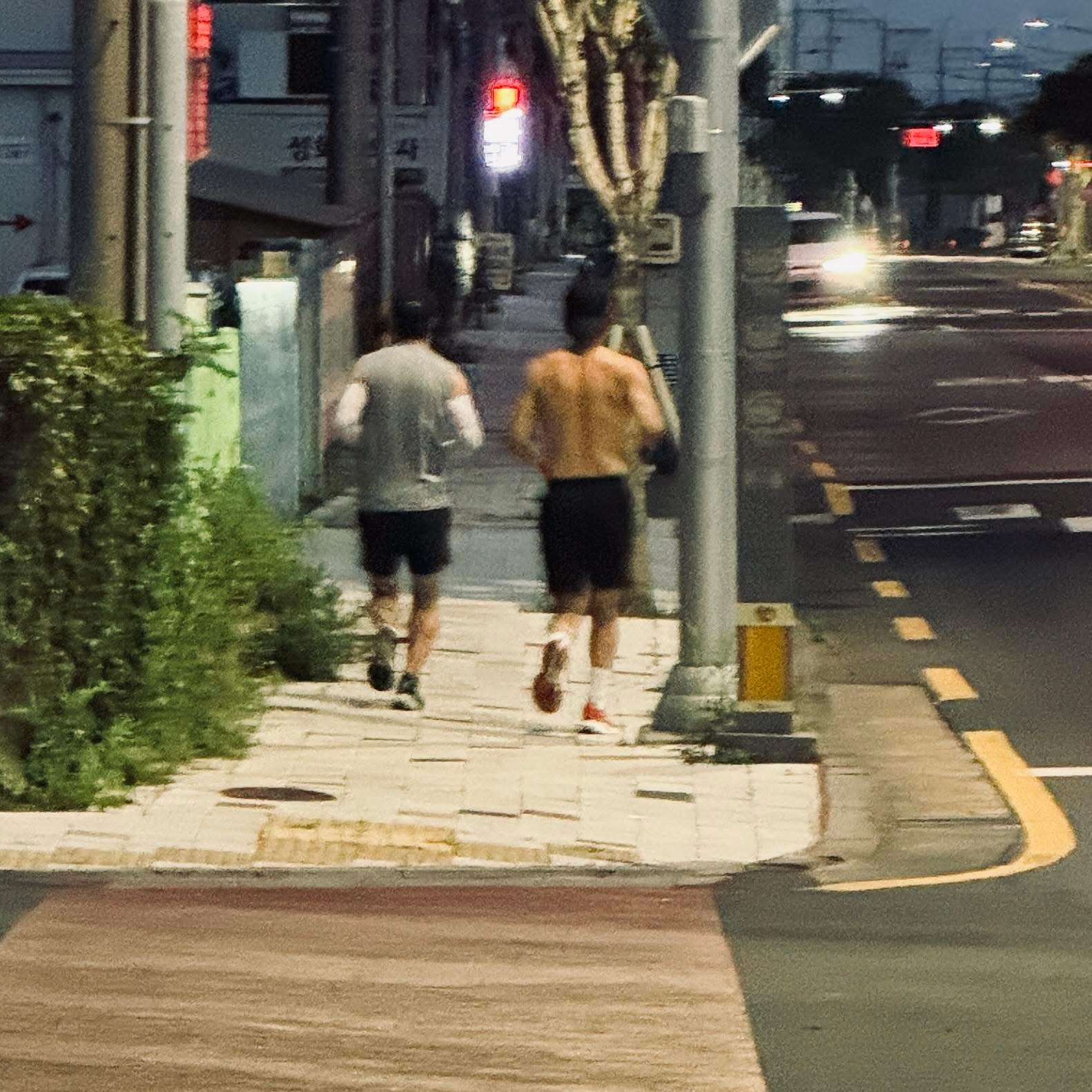 간신히 하루를 시작해 새벽 달리기를 나섰지만, 몇 분도 채 되지 않아 몸은 힘듦을 호소했고 결국 발걸음은 느려져 걷기 시작했다. 그때 옆을 스쳐 달려가는 두 명의 외국인을 마주쳤다. 잠시 망설이다가 그들의 뒷모습을 바라보며 다시 달리기 시작했다. 이상하게도, 그들을 따라 달리니 꽤 멀리까지 갈 수 있었다.