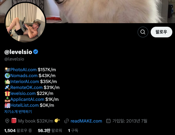 그는 주로 생성형 AI와 원격 근무 관련 서비스에 집중하며, 혼자서도 기업 수준의 성과를 내는 그의 방식은 오늘날 생성형 AI가 만들어낸 새로운 기회와 시너지를 잘 보여줍니다.